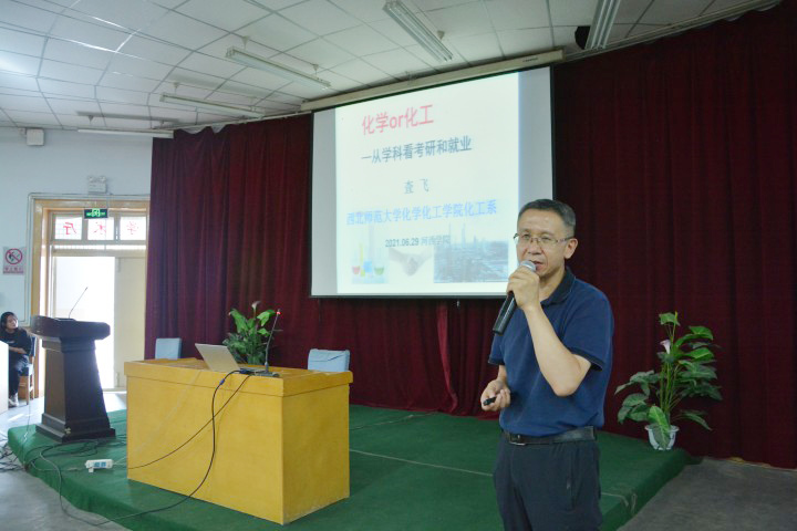 6月29日下午,西北师范大学查飞教授应邀在学术报告二厅为化学化工学院学生上了一堂题为“化学 or 化工——从学科看考研和就业”的职业发展导向课,近300名学生到场聆听。