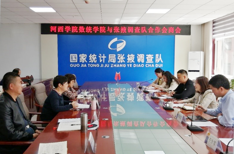 4月24日下午,数学与统计学院领导带领应用数学教研室相关教师,前往国家统计局张掖调查队就双方合作事宜进行交流会商。国家统计局张掖调查队党组书记、队长张颖及各室负责人参加座谈会。