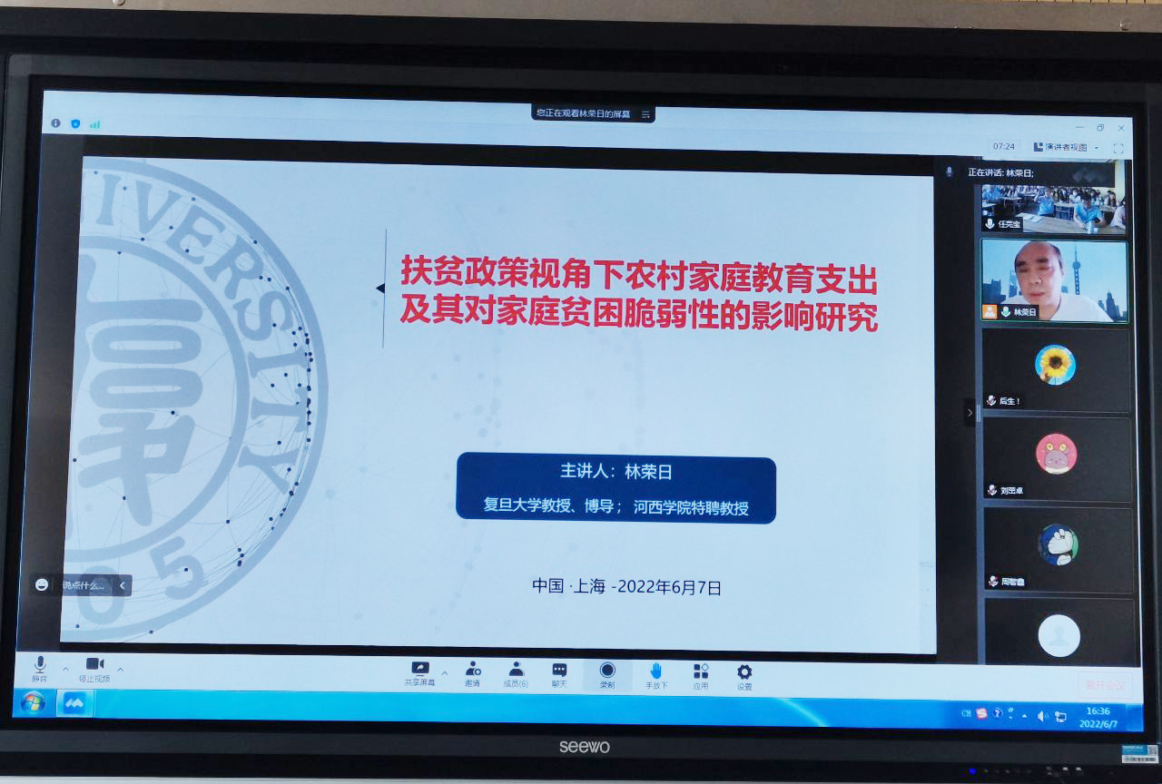 6月7日下午,教师教育学院举办第二十二届祁连学术月校外专家学术报告会。复旦大学博士生导师林荣日教授线上方式为师生作了题为《扶贫政策视角下家庭教育支出及其对家庭贫困脆弱性的影响研究》的报告。