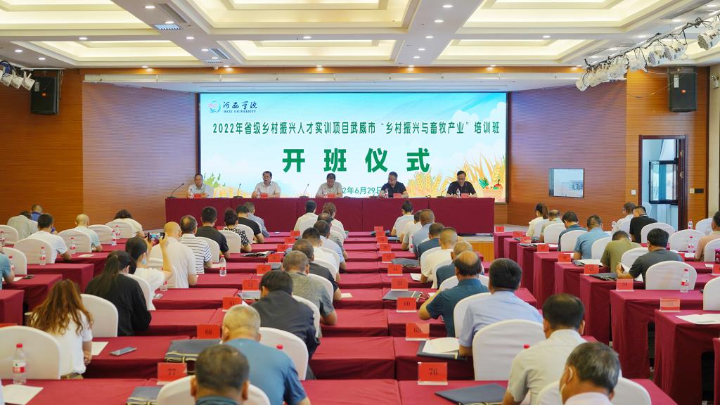 6月29日上午,继续教育学院在武威市举行2022年省级乡村振兴人才实训项目乡村振兴与畜牧产业培训班开班仪式。继续教育学院、武威市委组织部、武威市农业农村局负责人,教师代表和武威市从事乡村振兴与畜牧工作的业务骨干100人参加了开班仪式。...