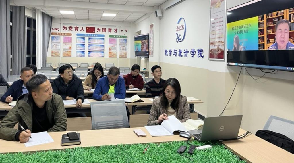 为进一步做好数学与应用数学师范专业认证工作,数学与统计学院邀请西南大学数学科学院王建军教授对师范专业认证工作进行线上“诊断”。学院领导、教研室主任及师范专业认证相关人员参加了会议。