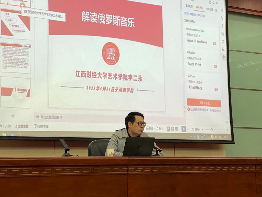 李二永教授的讲座从美育说起,用“音乐的魅力、俄罗斯音乐的风格以及俄罗斯名曲赏析”...