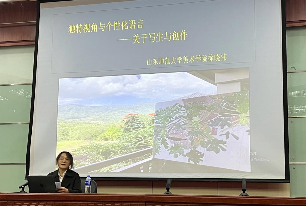 4月23日下午,应美术学院邀请,山东师范大学美术学院油画系副主任徐晓伟教授在图书馆学术报告厅为学院师生作了题为“独特视角与个性化语言——关于写生与创作”的学术报告,学院师生200多人参加了报告会。