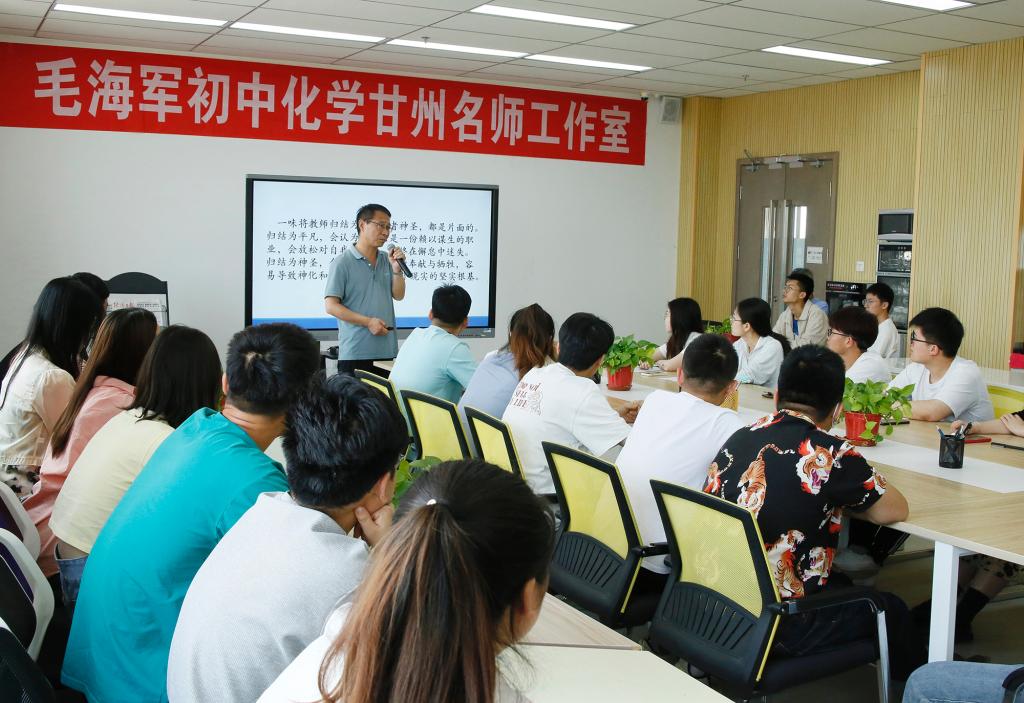 6月9日下午,张掖四中“毛海军初中化学甘州名师工作室”走进化学化工学院,与化学师范专业学生进行教学研习活动,学院30余名师范专业参加了此次教学研习。