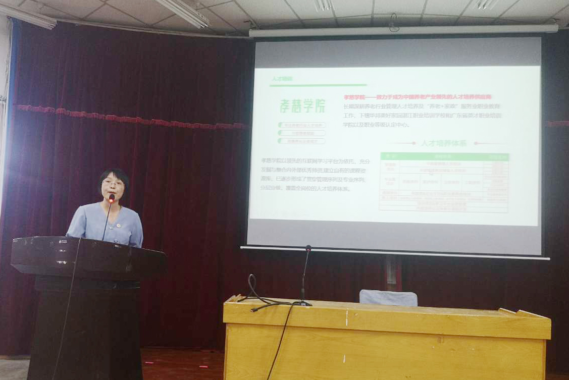 宋佳女以“养老护理专业现状及行业发展前景”为题,从积极应对人口老龄化的社会需求、...